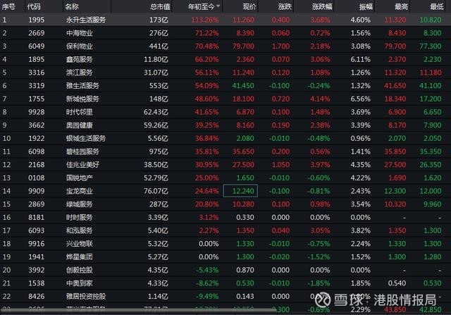其中永昇生活服務今年以來漲幅超過113%,中海物業、保利物業漲幅超過70%,鑫苑服務、 濱江服務、雅生活服務漲幅超過50%,還有新城悅服務、時代鄰里等6只個股漲幅超過30%。