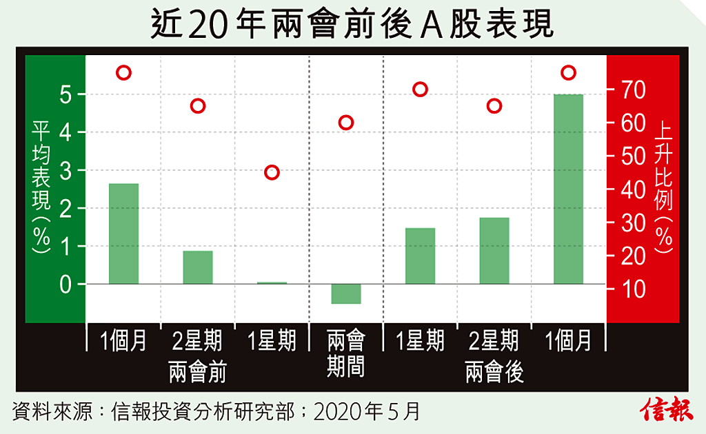 內地疫情漸穩,比海外更早開工復產,經濟有望最先重返正軌,吸引「聰明錢」投向A股。值得注意的是,因新冠肺炎爆發而延期的全國政協與人大會議(兩會),將於5月21日和22日在北京舉行,市場都猜測會否有新措施為股市帶來刺激。