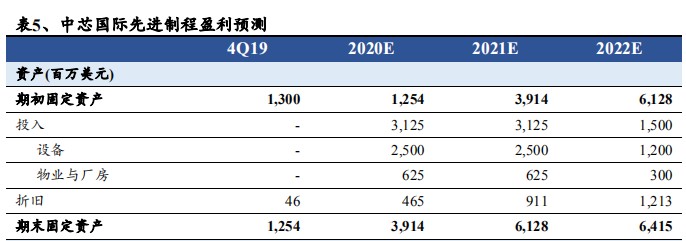 1)資產投入及折舊:根據公司科創板招股書披露,公司預計SN1產線共投資約90億美元,我們預計20 /21/22資本投入31億/31億/15億美元,設備投資佔總資本投入80%,固定資產按7年折舊;