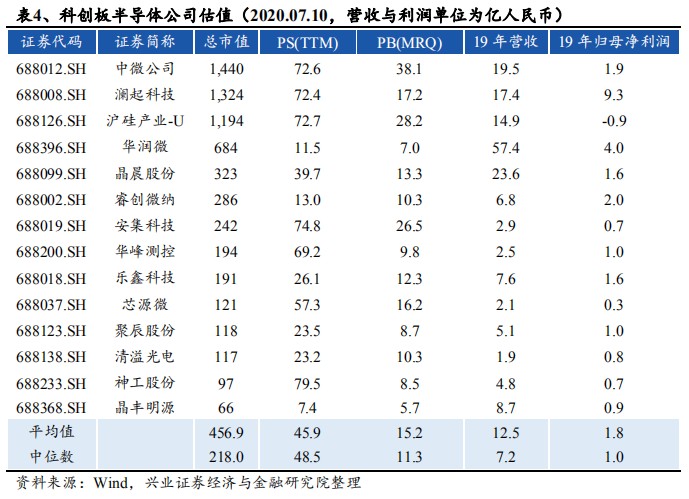 募資後每股淨資產提升4成,現有估值水平仍有股價上升空間。我們測算,此次發行後,公司2020年每股淨資產將由1.28美元提升至1.84美元,對應7.10收盤價為2.9倍PB。當前科創板的14家半導體公司(截至2020.07.10),整體市淨率與市銷率中位數為11.3x及48.5x,其中晶圓代工廠華潤微的PB/PS估值達7x/ 11.5x。參考在港股/科創板同時掛牌的中國通號,港股估值對照科創板約5成折價;我們判斷中芯國際在科創上市後,H股估值或在3x-5xPB區間,對應股價為43.5-72.5港元。