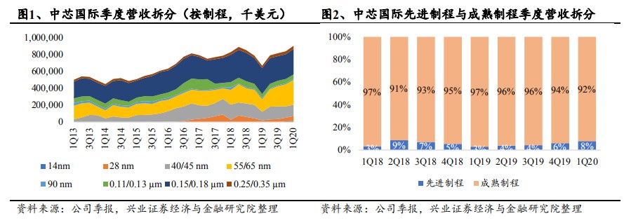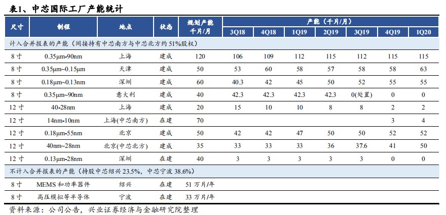 先進製程全年低個位數營收佔比,20H2折舊常態化影響毛利率。公司先進製程的營收佔比自19Q1至20Q1提升5pcts至8%,二季度初14nm產能已達到6K/月,預計年末達15K/月水平;10nm規劃20Q4量產,兩條產線預計在今年合計貢獻3%以上營收。與此同時,先進製程的折舊將在下半年進入常態化,毛利率或下滑至21-23%區間,全年整體約24%。當前公司維持先進製程的建設計劃,並擴充成熟製程以滿足需求,伴隨利用率與良率爬坡,我們測算公司先進製程或在22年底出現毛利扭虧。