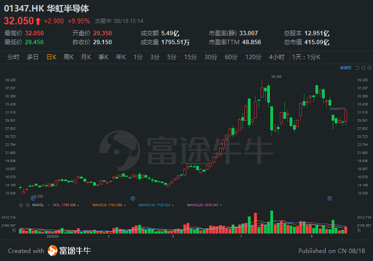 富途資訊8月18日消息,華虹半導體8月11日公佈中期業績,隨後四個交易日累跌逾12%,今日大幅反彈,截至發稿,漲超9%。