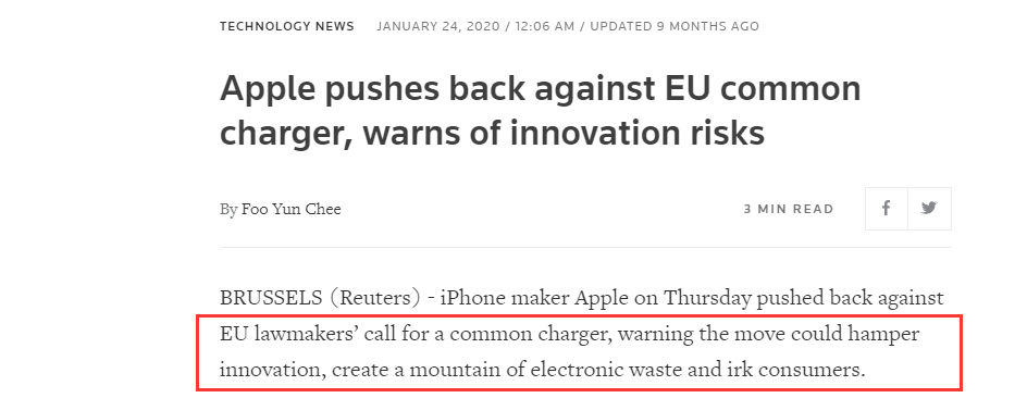 不送充電頭是為了環保,不統一接口是為了創新。