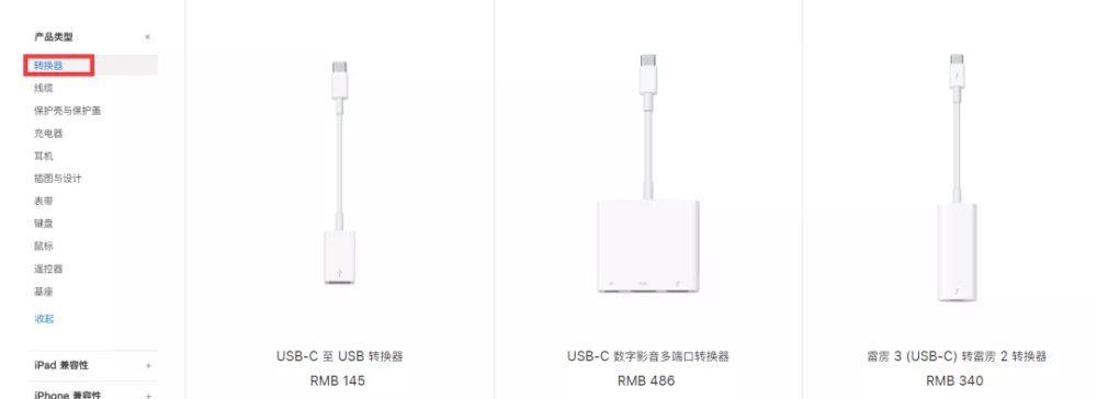 到官網一看,光轉換器這一欄就高達36款,價格全部加起來得要一萬多,買個iPhone 12 都綽綽有餘了,更別提還有各種電源適配器。