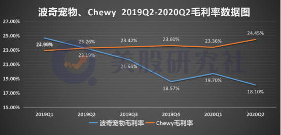 國內和海外對於寵物品牌選擇方向的差異,使得國內波奇寵物和美國的Chewy在成本控制方面表現不一。2020年上半年,波奇的毛利率為18.2%,而同期Chewy毛利率為24.45%。