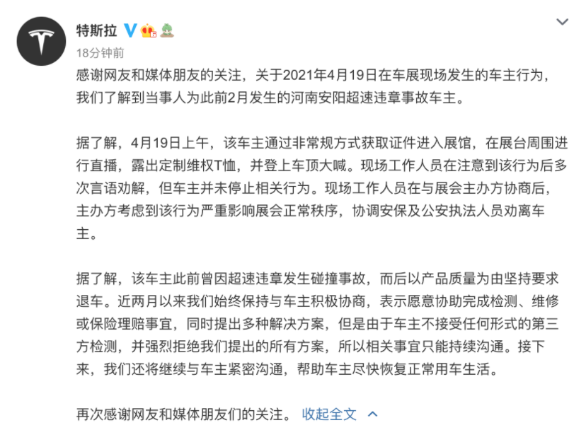 可能沒有人會料想到,這一屆上海車展的風頭,會被特斯拉風波掩蓋。個中緣由,我們無從評說。法治是最好的營商環境,如果產品質量有問題,那就應該維權和上訴,我們支持用戶走法律途徑。