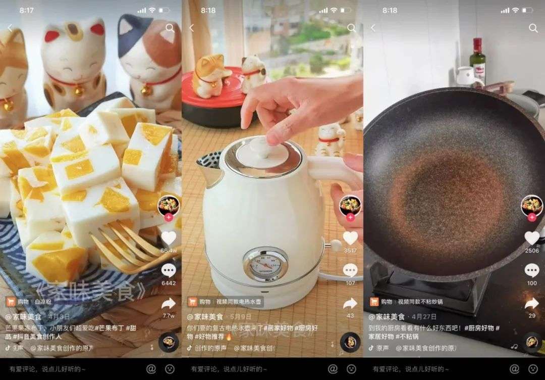 二是純種草內容,達人會在視頻中安利一些自用好物,包括美食、廚具、小家電等,為用戶細心講解該產品的使用心得、適用場景、消費人群,並會積極“猜測”用戶的痛點在視頻中給予回答。如:在介紹一款不粘鍋時,達人用一句“這口鍋是我平時視頻裡經常用的不粘炒鍋”迅速拉攏了用戶的距離,而視頻裡提到的“鍋身淨重只有961克,特別適合力氣小的女士或者老年人使用”,“不管是煎魚還是炒菜,都不會粘鍋”等信息點,則有效打消了用戶的購買疑慮,加速了他們的下單決策。