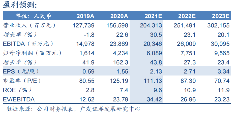 廣發預計,比亞迪整車銷量高增、電池擴產外供提速、半導體拆分上市有望提高估值,給2021年150倍PE,對應A股合理價值319.22元人民幣/股,按當前AH溢價比例,對應H股合理價值為284.56港元/股。