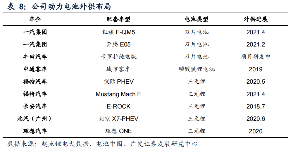 廣發證券 隨著長沙/蚌埠/長春等新基地的拓展和投產,刀片電池加快產能擴張,外供進度提速。((