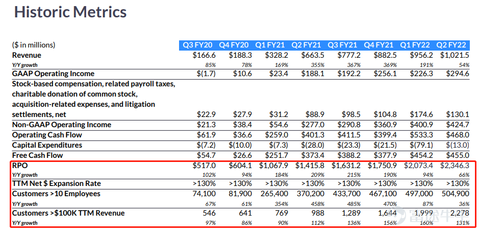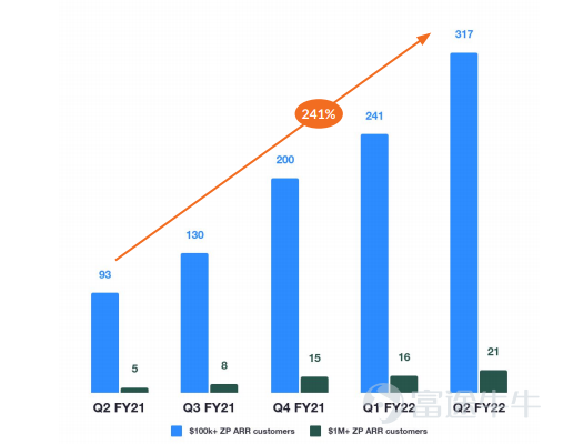 付費10 萬美元以上 ARR 的數量客戶同比增長241%,其中包括 21個100萬美元以上的客戶。