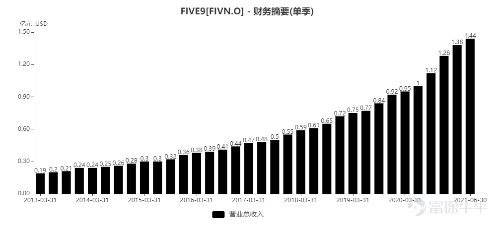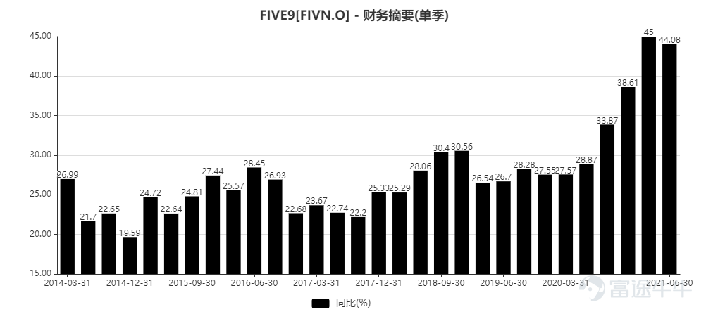 從增速的表現來看,five9基本上過去十年每個季度的收入增速都在20%以上,去年以來,因為新冠疫情的催化,公司的業績明顯加速,在後疫情時代,仍然值得看好。