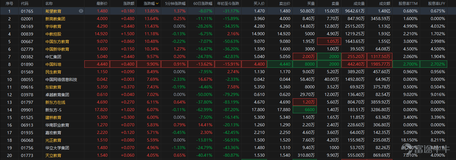 10月15日,港股民辦高教集體高漲,走出此前長期的低迷。