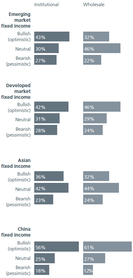 與此同時,36% 的全球資產所有者表示他們對未來兩年的亞洲固定收益市場持樂觀態度。大多數人對主權債務和投資級別感興趣,而不是高收益債券。