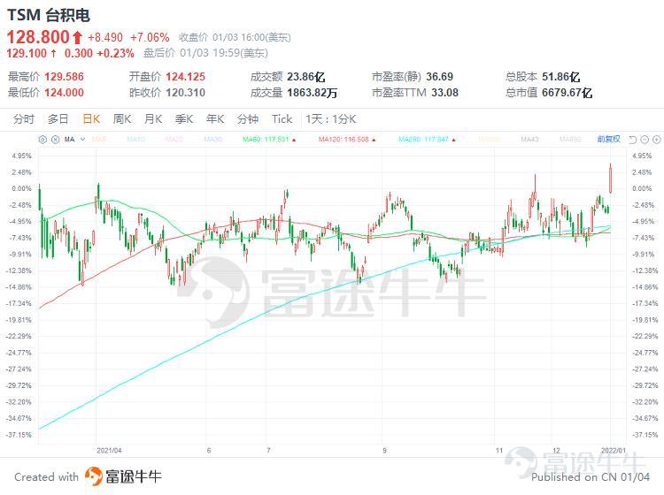 美股週一(2022年1月4日),台積電股價大漲7%