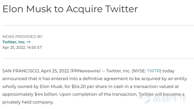 他從3月開始低調持股,通過發推大搞輿論戰,成為大股東,4月發出要約,到從金融機構拿到債務融資籌備好資金,到今日官宣,以閃電速度完成收購。