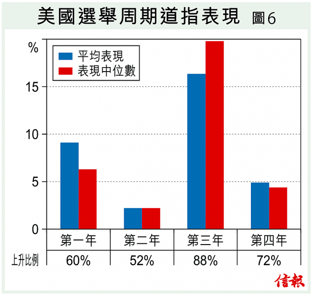 值得一提的是,今年是美國國會中期選舉年,從歷史表現來看,美股同樣地走勢相對偏弱【圖6】。正所謂屋漏偏逢連夜雨,今年美股如果只是出反覆走勢已屬萬幸。看來,股市反反覆覆、風雨飄搖的日子還會持續多一段不短的時間。故此,今年投資美股,還是量力為妙。