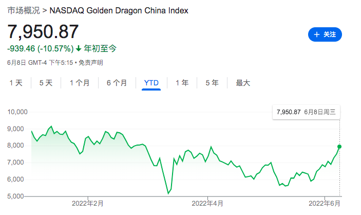 近期中概股掀起一波強勁反彈。納斯達克金龍中國指數已經連漲三天,自5月11日以來累計上漲逾40%,不過今年以來仍累計下跌逾10%。