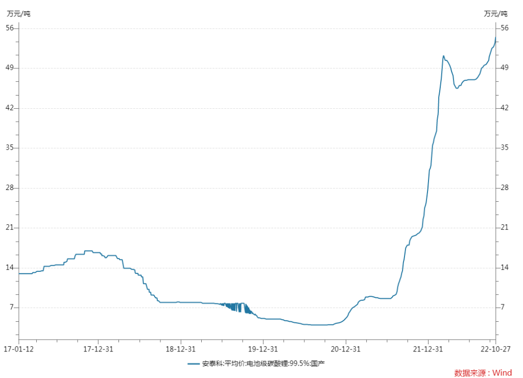 在下游持續旺盛的需求下,鋰價在經過一段調整期後重新向上進發。