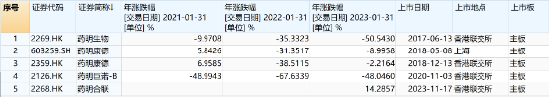 藥明生物連續3年下跌,2023年內跌幅高達50%,藥明康德同樣連續兩年下挫。